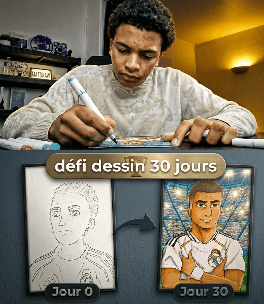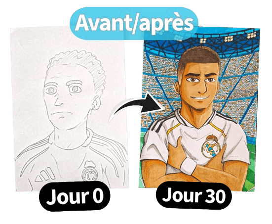 Ce programme est littéralement conçu pour toi. La méthode classique te demande d'avoir du "talent inné". Moi, je te demande juste de suivre mon mode d'emploi. On commence le Jour 0 par poser des formes simples. On déconstruit le visage de ton idole étape par étape. Si tu es capable de tracer un cercle et une ligne droite, tu as tout ce qu'il faut pour suivre cette méthode de A à Z et obtenir des résultats dans un mois