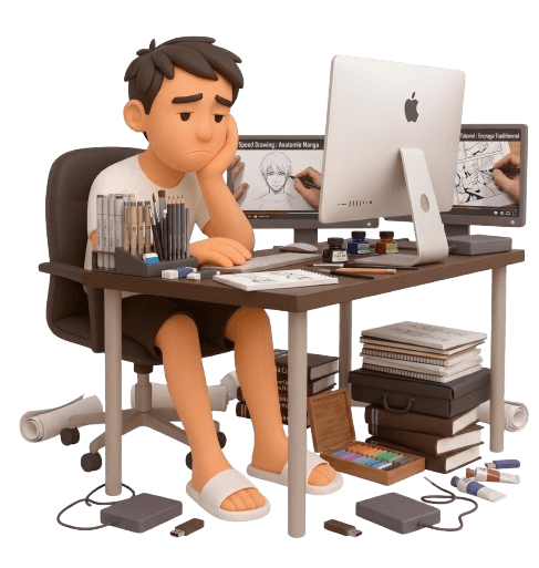 ❌ Le problème : Tu t'éparpilles et tu accumules des dessins inachevés.
