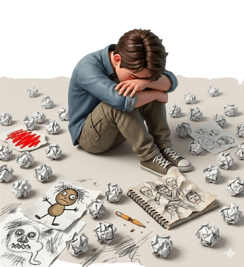Tu finis avec des carnets remplis de dessins moyens, tu es complètement démotivé, et tu perds toute confiance en toi...